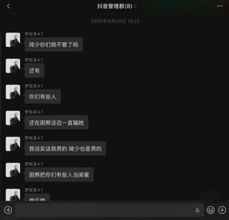 抖音男网红罗琰泽人设彻底崩塌。过去他靠“单身、温柔男孩”形象吸引大量女粉,但如今被曝一边与女网红困熊恋爱,一边私下用相似话术同时撩拨多名女粉丝,甚至约她们开房发生关系。