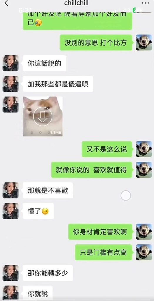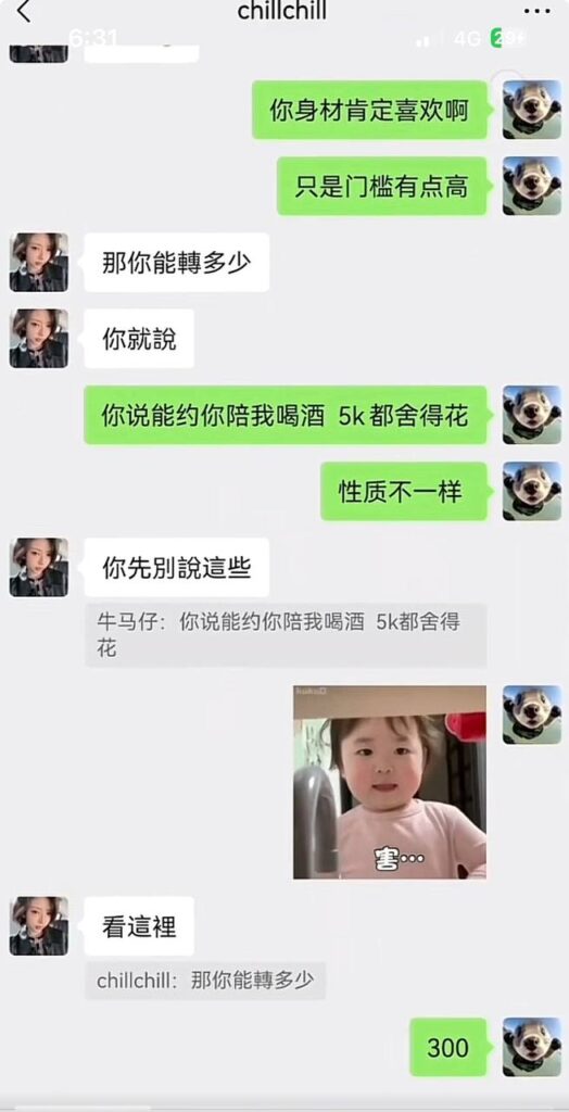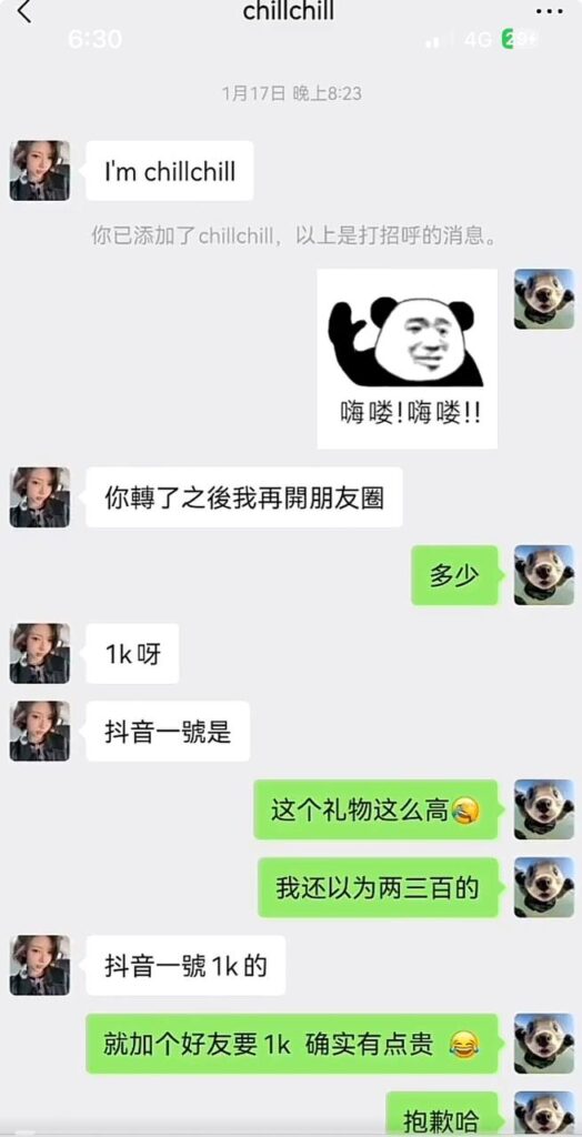 抖音上有位九万粉丝的小网红“一只椒仔”,视频里清纯可爱、活泼动人,私下却把粉丝和“大哥”当成“人肉取款机”。她不只靠才艺吸粉,还早已把“生意”做到线下。外表像初恋般清新甜美,背后却是明码标价的交易,这种反差让不少自以为遇到真爱的“老哥”认清了现实。