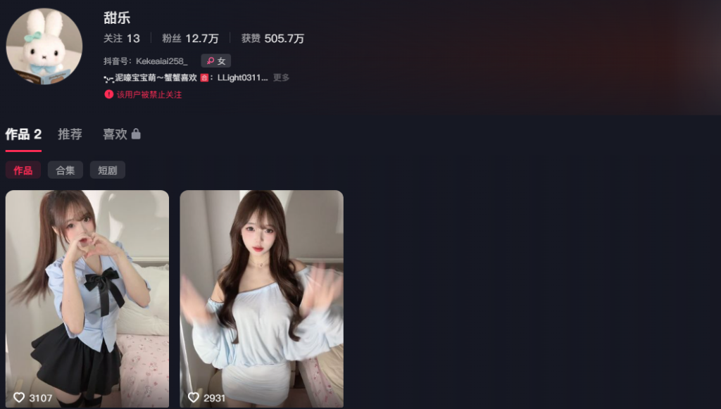 13万粉丝抖音擦边网红02uiii被封禁定制视频外流
