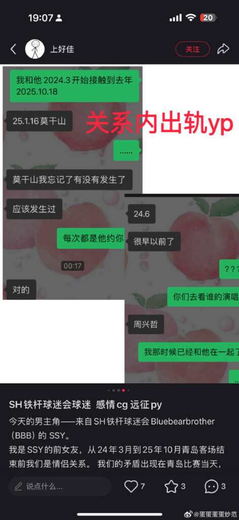 该文章由全网吃瓜发布,转载请注明来源并附上原文链接: 中超再曝丑闻SH职业赛事裁判ssy被前女友实锤出轨带着py看比赛