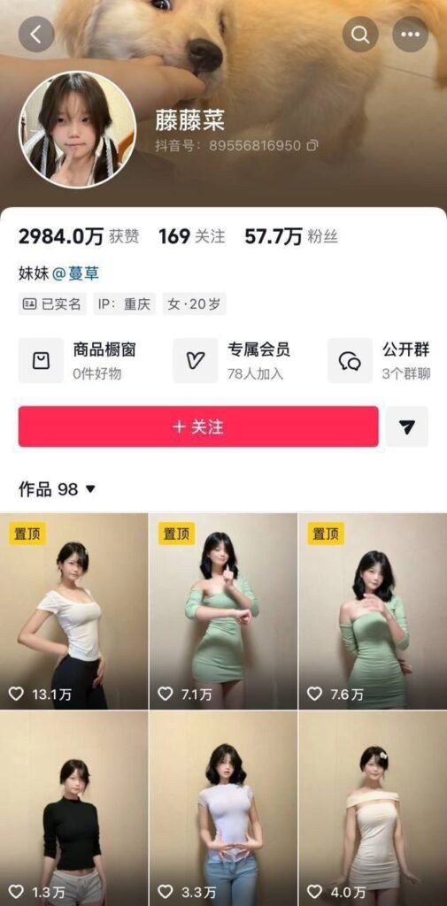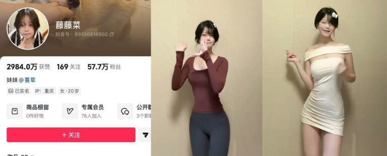 该文章由全网吃瓜发布,转载请注明来源并附上原文链接: 58万粉丝抖音网红藤藤菜被封号疑似私拍福利视频外流