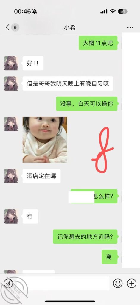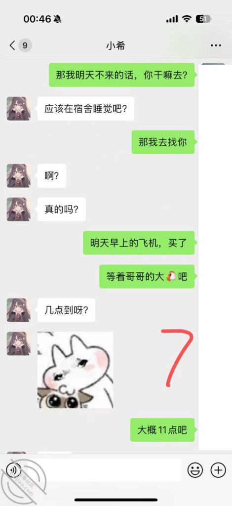 我说没回呢,其实回这消息的时候,她妹妹已经在来找我的路上了。