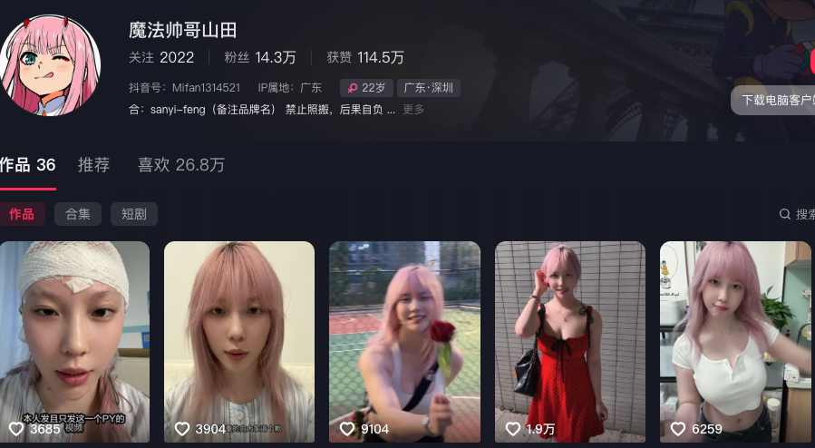 14万粉丝抖音网红魔法帅哥山田被传塌房光之国事件视频外流