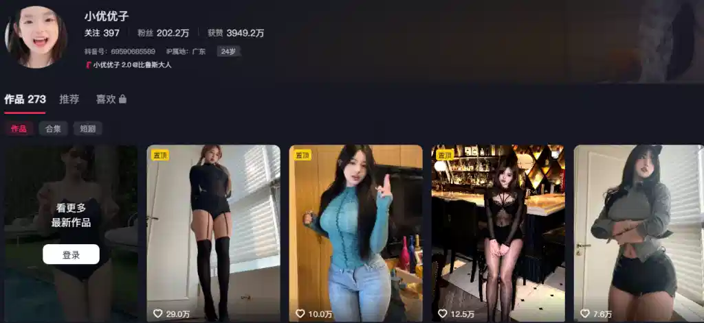 抖音200万粉丝的人气博主**小优优子**,以甜美性感的独特风格和极具辨识度的曼妙身材备受关注。她拥有经典的梨形身材,腰臀比例出众,曲线柔美优雅;上围丰盈饱满,臀部线条圆润挺翘,进一步强化了整体的女性魅力与鲜明个人特色。